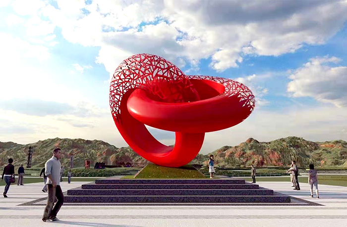 不銹鋼景觀雕塑生產廠家-雙圓雕塑-不銹鋼圓圈雕塑-紅色不銹鋼雕塑-鏤空不銹鋼雕塑-太尚雕塑